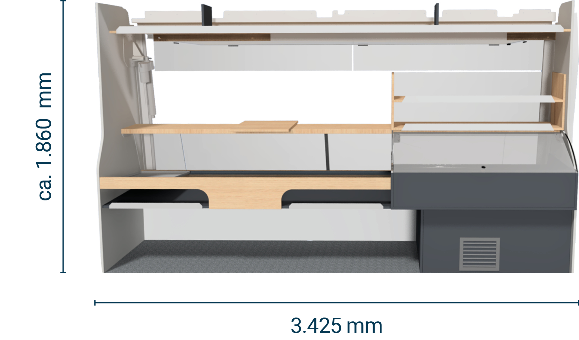 • Freier Stauraum zwischen Spülschrank und Fahrerhaus